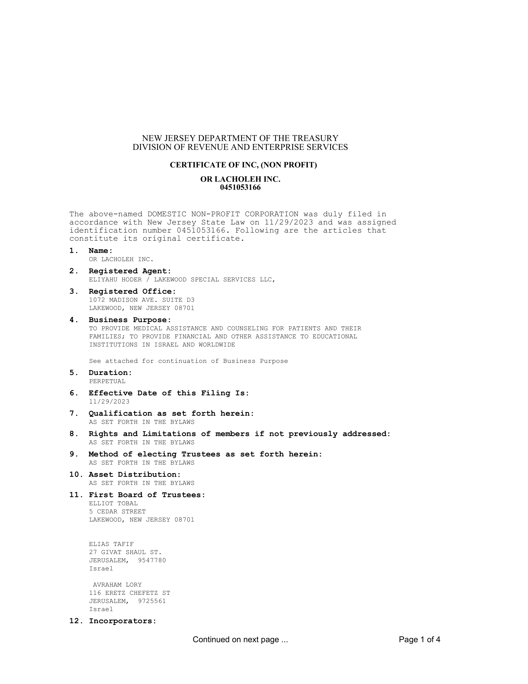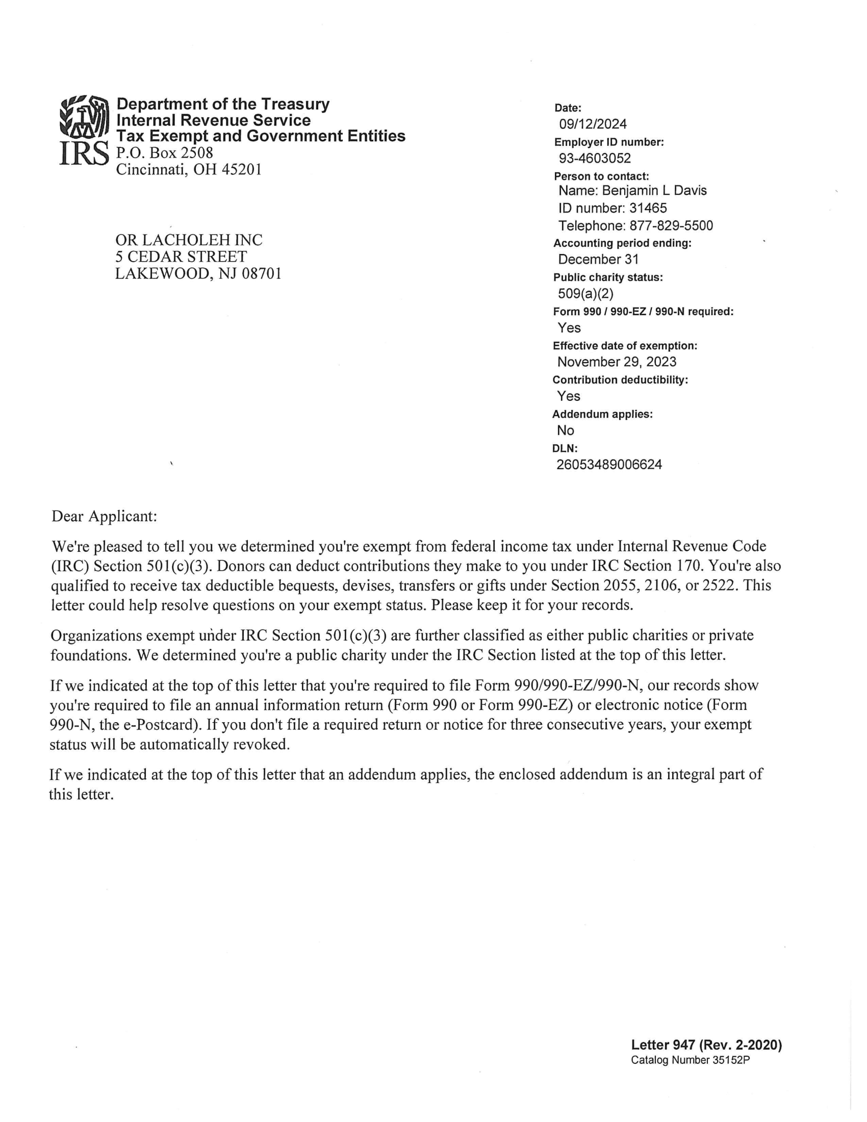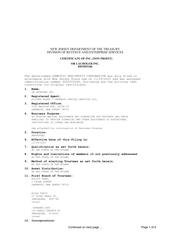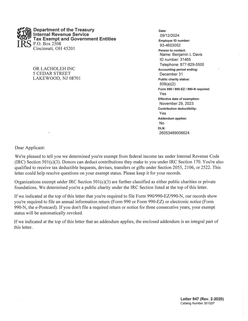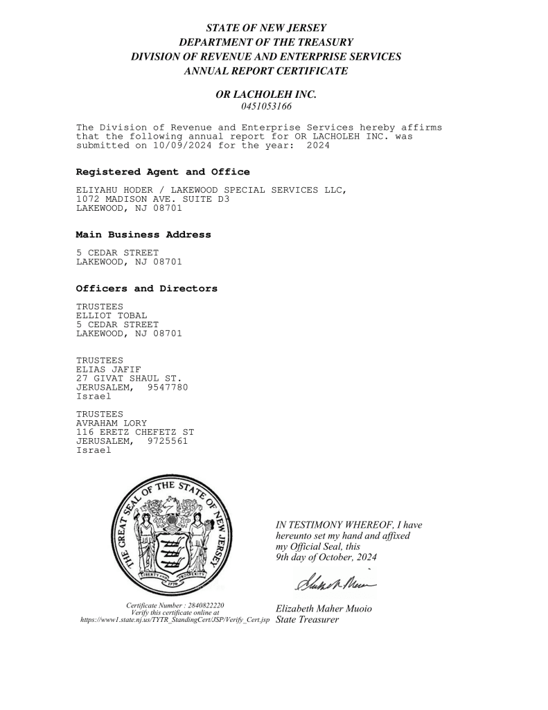 Our 501(c)(3) was established in 2024, with our first Form 990 filing scheduled for December 2025. While our American operations are new, we build on a strong foundation—our Israeli partner organization has operated since 2016, maintaining comprehensive accounting records and proper regulatory filings.