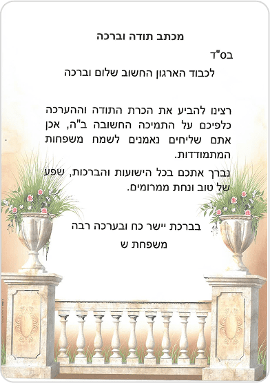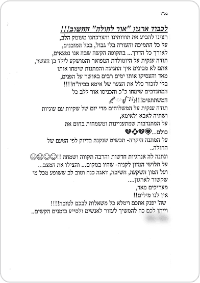 We appreciate it deeply, and we are at a loss for words! May Hashem bless you, fulfill all your good desires, and give you the strength to continue helping others and supporting people during their challenging times.